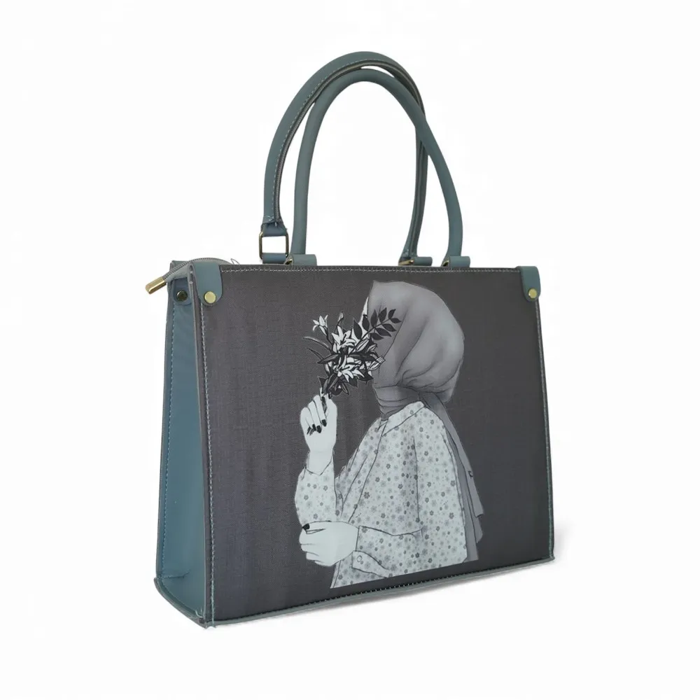 Add a touch of elegance to your look with this beautifully designed printed handbag. Made from high-quality soft material, it features a captivating artistic print of a woman holding flowers ? a perfect blend of art and fashion. The golden metal accents and durable handles elevate its premium appeal, making it suitable for both everyday use and special occasions.